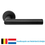 Mat zwarte deurklink op rond rozet - type Alba Promo strak recht - per paar - merk ASG E&A